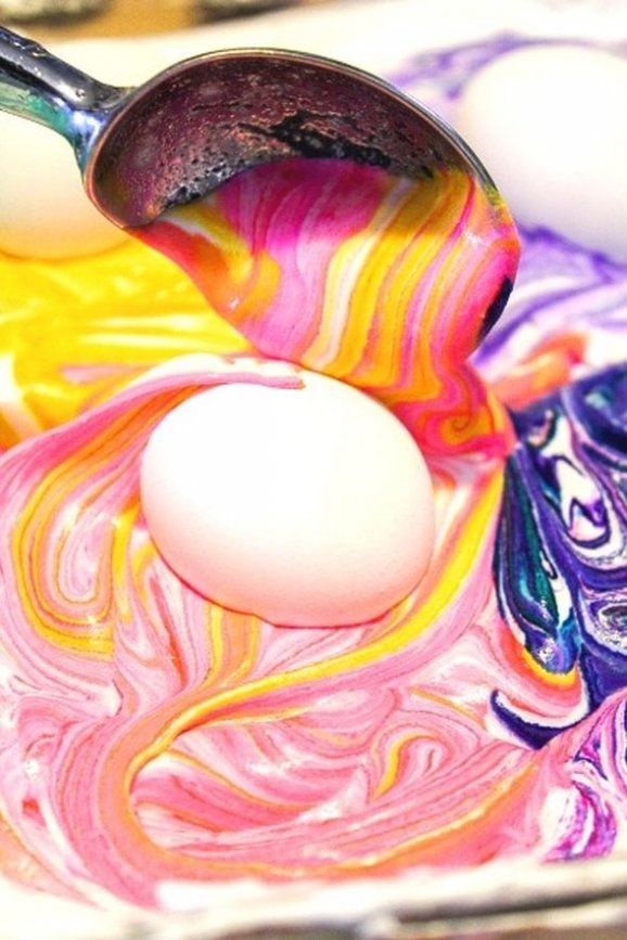 Vajíčka obarvená pomocí šlehačky získají nevšední vzhled / Pinterest